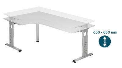 Eckschreibtisch ULM, li. od. rechts, B 2000 x T 1200 x H 650-850 mm, weiß