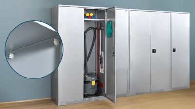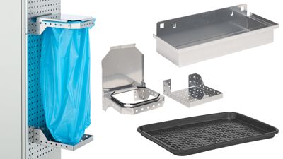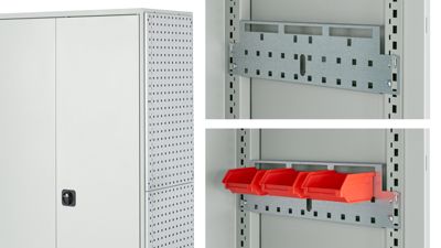Das Orgaset und das Lochrasterwandset bilden die Basis, um Ihren Mehrzweckschrank flexibel zu erweitern. Im Schrankinneren ermöglicht das Orgaset die Montage von Zubehör wie Kleiderstange, Abfallsammler oder Sichtlagerkästen der Serie LF. Zusätzlich lassen sich Haken und Halterungen sicher befestigen. Für die Schrankaußenwand erhalten Sie mit dem Lochrasterwandset die ideale Lösung: Hier können Sie Haken, Halter und sogar eine Gerätehalterleiste anbringen, um Ihre Arbeitsgeräte jederzeit griffbereit zu haben.