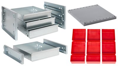 Gestalten Sie den Mehrzweckschrank nach Ihren individuellen Anforderungen: Von Fachböden bis zu Zubehörteilen wie Schubladenblöcken oder Lochrasterwänden – dieses modulare System passt sich flexibel an und wächst mit Ihren Anforderungen.