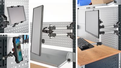 Mit praktischen Halterungen integrieren Sie Ihre digitalen Endgeräte ergonomisch in Ihren AST31 Arbeitsplatz. Ob Smartphone, Tablet oder Monitore mit oder ohne Tastaturablage – alle Halterungen sind individuell einstellbar und erlauben einen optimalen Blickwinkel. Das verbessert Ihre Übersicht und steigert die Arbeitseffizienz.