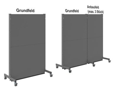 Die Schallschutz Stellwand erhalten Sie in 2 verschiedenen Ausführungen – als Grund- oder Anbaufeld. Bei der Kombination dieser Module ist folgendes zu beachten: Das Grundfeld bildet die Basis und kann sowohl einzeln als auch in Verbindung mit einem oder mehreren Anbaufeldern verwendet werden. Diese dienen zur individuellen Erweiterung und ermöglichen eine flexible Anpassung an den gewünschten Arbeitsbereich. Das Anbaufeld wird zur Verlängerung eines einzelnen Grundfeldes eingesetzt und kann auch als Abschlussmodul der Stellwand dienen.
