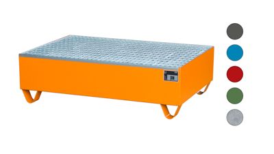 Nutzen Sie verschiedene Farbvarianten, um die Lagerung von diversen Flüssigkeiten durch eine farbliche Trennung zu erleichtern. Die Auffangwanne ist zur eindeutigen Farbkennung in verschiedenen RAL-Farbtönen erhältlich. Sie können zwischen den Lackierungen aus Mausgrau RAL 7005, Lichtblau RAL 5012, Gelborange RAL 2000, Feuerrot RAL 3000 und Grün RAL 6011 wählen. Zudem ist eine feuerverzinkte Variante in Lichtgrau verfügbar.